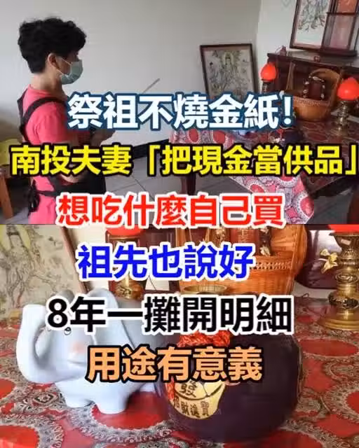 但是,在南投縣卻有一對夫妻不走尋常路,他們會將祭品、金紙換算成現金後,直接擺上貢品桌,反而能夠為家裡人帶來更多好運。