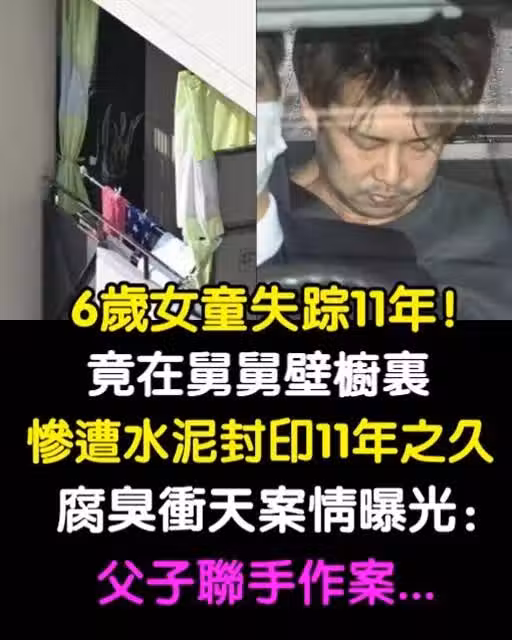 6歲女童失蹤11年!竟然在舅舅壁櫥里「慘遭水泥封印」「11年之久」腐臭沖天案情曝光:父子聯手作案