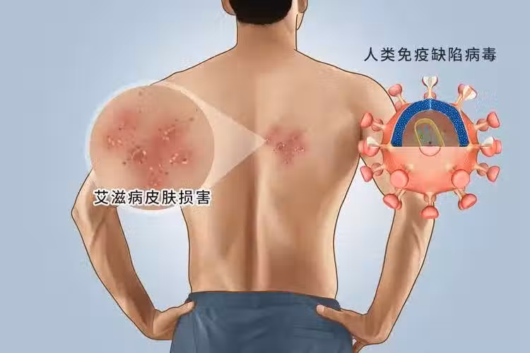 愛滋病會不斷攻擊人體免疫系統,導致免疫力下降,期間可能無法有效抵抗各種細菌和病毒的感染,導致人體出現各類皰疹、疣以及其他感染性皮膚病;患者抓撓患處後容易發生皮膚潰瘍,並且不易癒合。