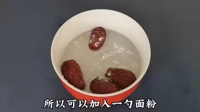 抓洗一小會兒也可以看見,水已經逐漸變得渾濁,所以以後在使用紅棗之前,無論是泡水煲粥或者煮湯等等,都一定要用這個方法給它清洗一下哦,洗好之後撈出,再用清水沖一衝,衝去表面的麵粉,以及搓出來的灰塵即可。
