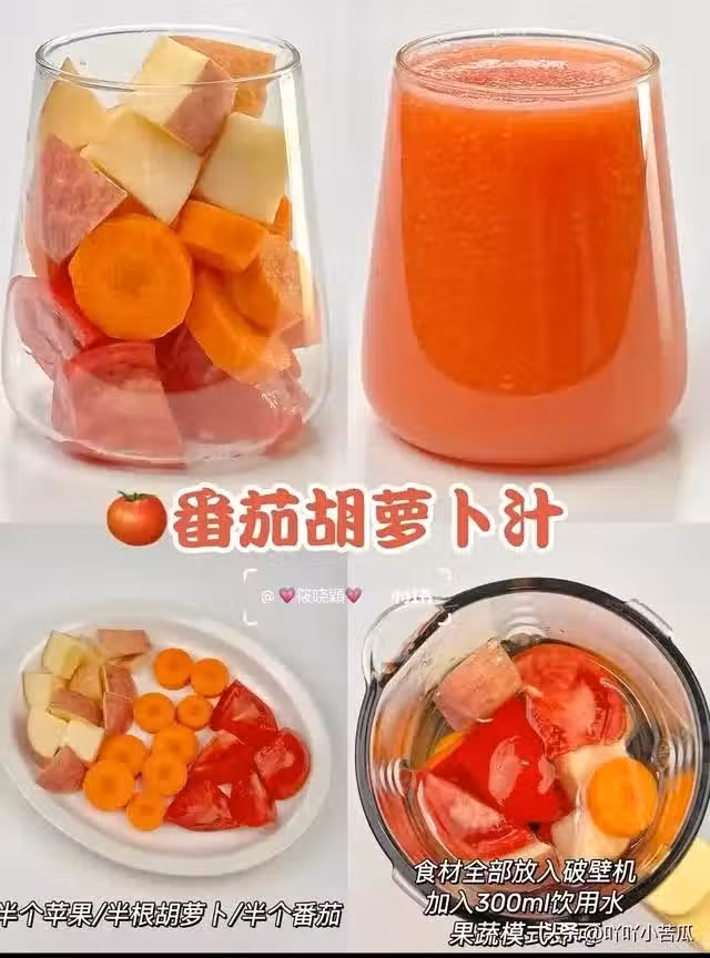 食材:番茄1個+胡蘿蔔半根+蘋果1/4個+200ml水。