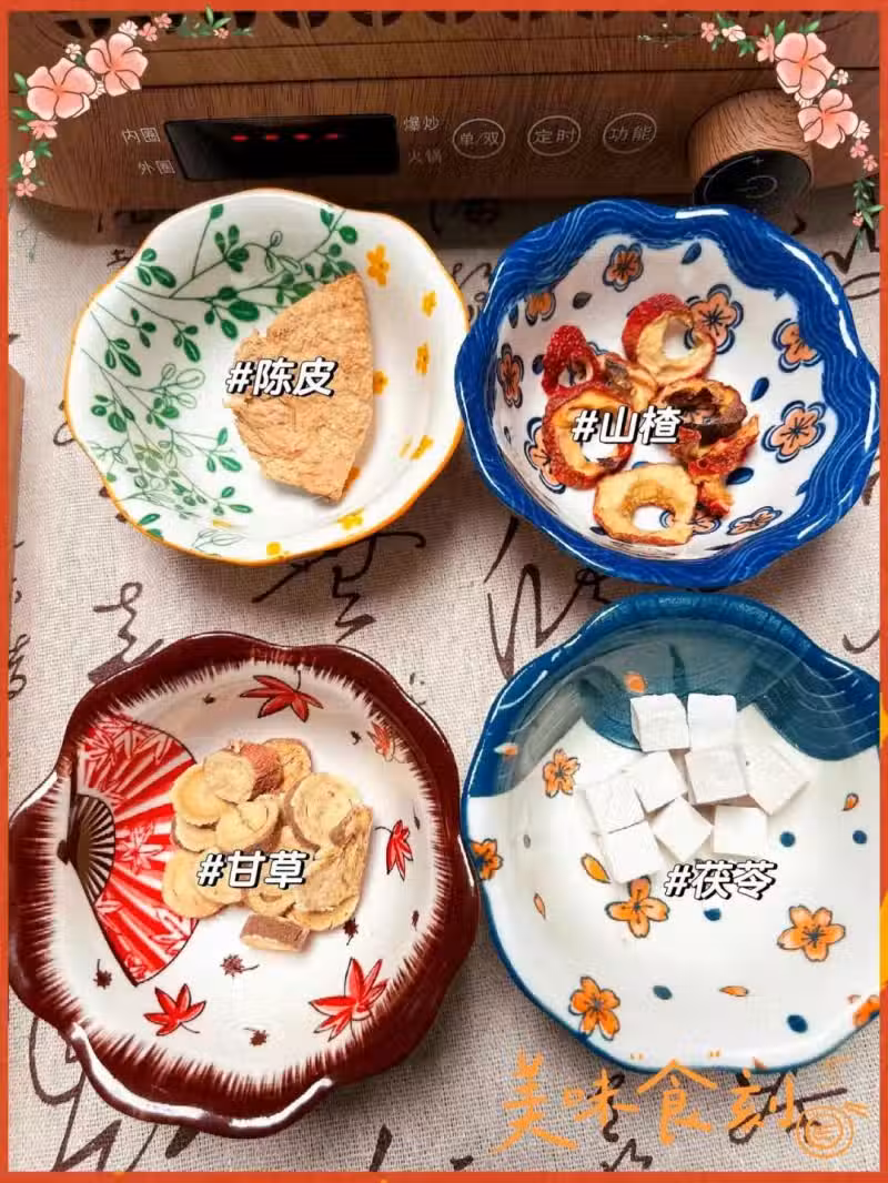 平時喜歡吃油膩的東西,身體里就會堆積一些濕氣和痰。喝這款陳皮山楂茯苓甘草茶,讓身體感覺更輕鬆,還能刮刮油,減少油膩感。