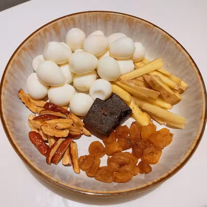 鵪鶉蛋|桂圓乾|紅棗4顆|枸杞一小把|紅糖兩塊|生薑