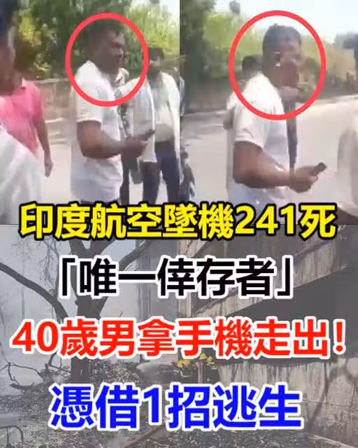 印度航空墜機241人遇難「唯一倖存者」40歲男拿手機走出!機上座位曝光「憑1招逃生」