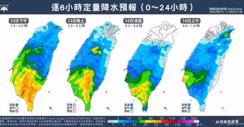 台灣颱風論壇也提醒,夜晚到明天(14)期間,屬於水汽緩慢減少階段,降雨強度會漸逐漸緩和,但仍會持續有一陣一陣的降雨,不會立即停止,這幾天因為地震關係,山區特別注意坍方、落石及土石流等災害!