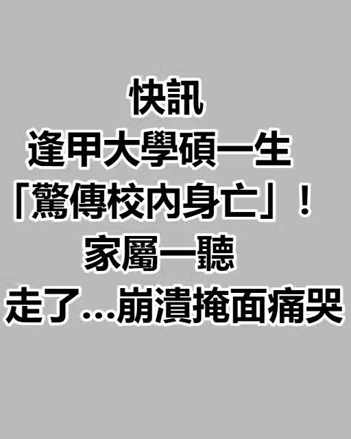 快訊/逢甲大學碩一生「驚傳校內身亡」!家屬一聽:走了…崩潰掩面痛哭