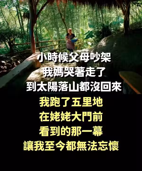 小時候父母吵架,我媽哭著走了,到太陽落山都沒回來,我跑了五里地,在姥姥大門前看到的那一幕,讓我至今都無法忘懷...