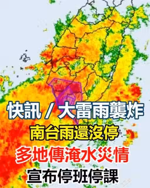 快訊/大雷雨襲炸南台灣「雨還沒停」,多地傳淹水災情,宣布停班停課!