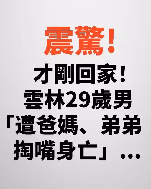 才剛回家!雲林29歲男「遭爸媽、弟弟掏嘴身亡」...