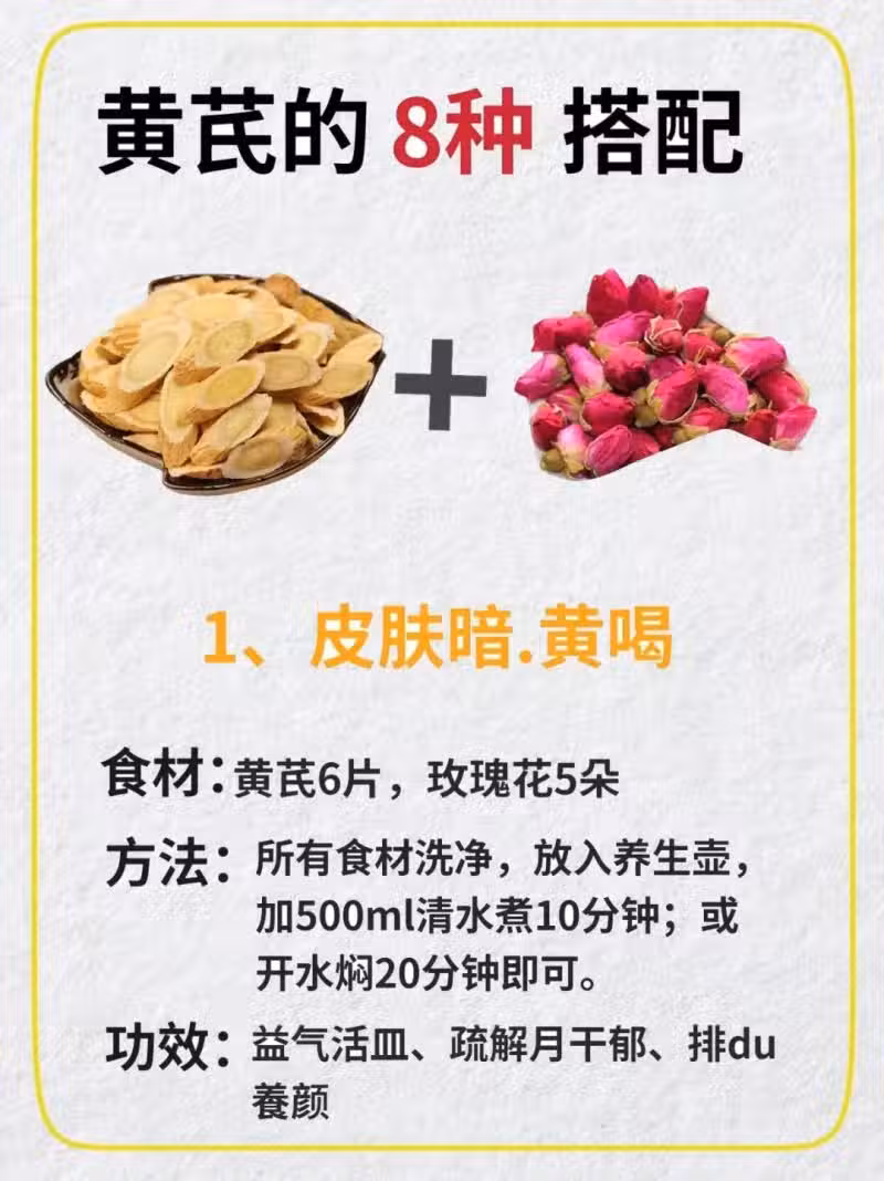 黃芪+玫瑰——去黃提亮組合