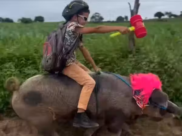 巴西「野豬騎士」小男孩 超高速狂奔:最快紀錄1分鐘就抵達學校