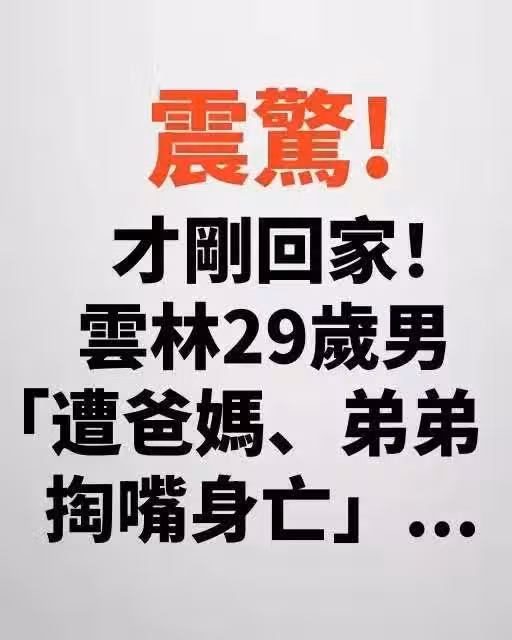 才剛回家!雲林29歲男 「遭爸媽、弟弟掏嘴身亡」..
