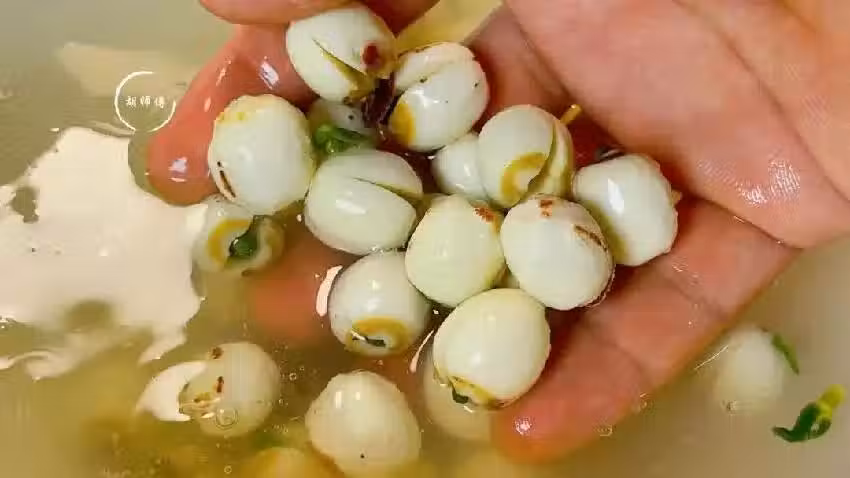 第二步:將蓮子沖洗乾淨後,將蓮子放入溫水中浸泡2小時左右就可以撈出備用,蓮子用溫水泡一下,可以節省煮制的時間,如果不浸泡,蓮子煮30分鐘才會軟,泡後煮20分鐘就可以變軟呢。