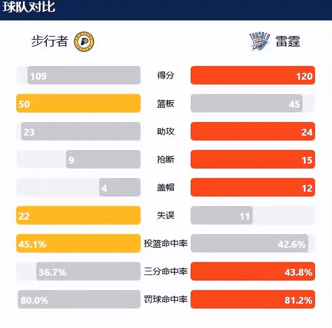 下半場風雲突變,卡萊爾將主控權交到替補悍將麥凱奈爾手裡,單節8投6中砍下13分幫助步行者一步步縮小分差,但是杰倫威太神了,接連不講理上籃打中,三節打完雷霆依舊領先8分。到了決勝時刻,西亞卡姆站出來內外開火,步行者將落後追到只有2分,關鍵時間又是杰倫威三分命中,而後又打成2+1,多特三分也續上火力,雷霆一波21-8高潮奠定勝局,最終步行者客場109-120輸掉了這場關鍵天王山之戰!