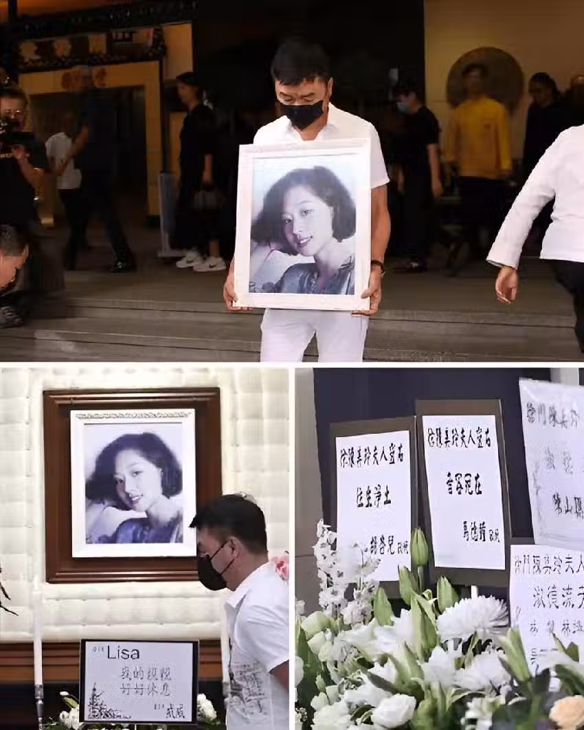 艾威身穿白色素服一早來到靈堂打點事務,靈堂橫匾上寫著「人美心善」四字,遺照選用了Lisa年輕時一張面帶微笑的側面照。