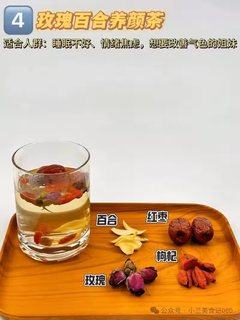 💖百合潤肺,玫瑰枸杞補氣血,喝完臉蛋自帶柔光,睡眠質量飆升~