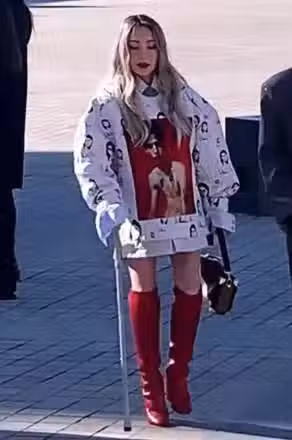 雖然醫生叮嚀不可以穿高跟鞋,但工作已經安排好了,即使痛到不行,她仍敬業上工,拄著拐杖走路令人心疼,原本要舉行的世界巡迴演唱會也不得已喊停。