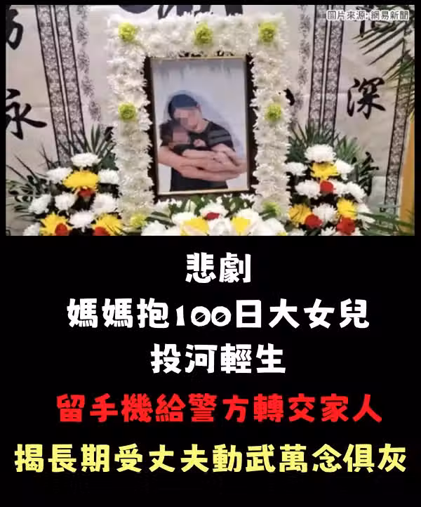 內地日前發生一宗悲劇,一名媽媽疑長期受丈夫暴力對待,一時想不開,抱著剛滿100日大的女兒跳河輕生。