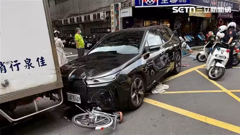 一輛BMW電動車在台北市大同區南京西路行駛時,突然失控暴沖,造成嚴重的連環車禍。