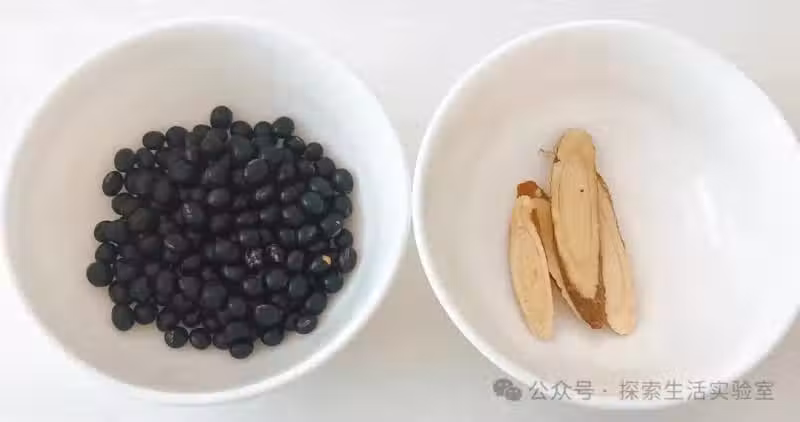 1️⃣把黑豆泡發,甘草用清水沖一下。