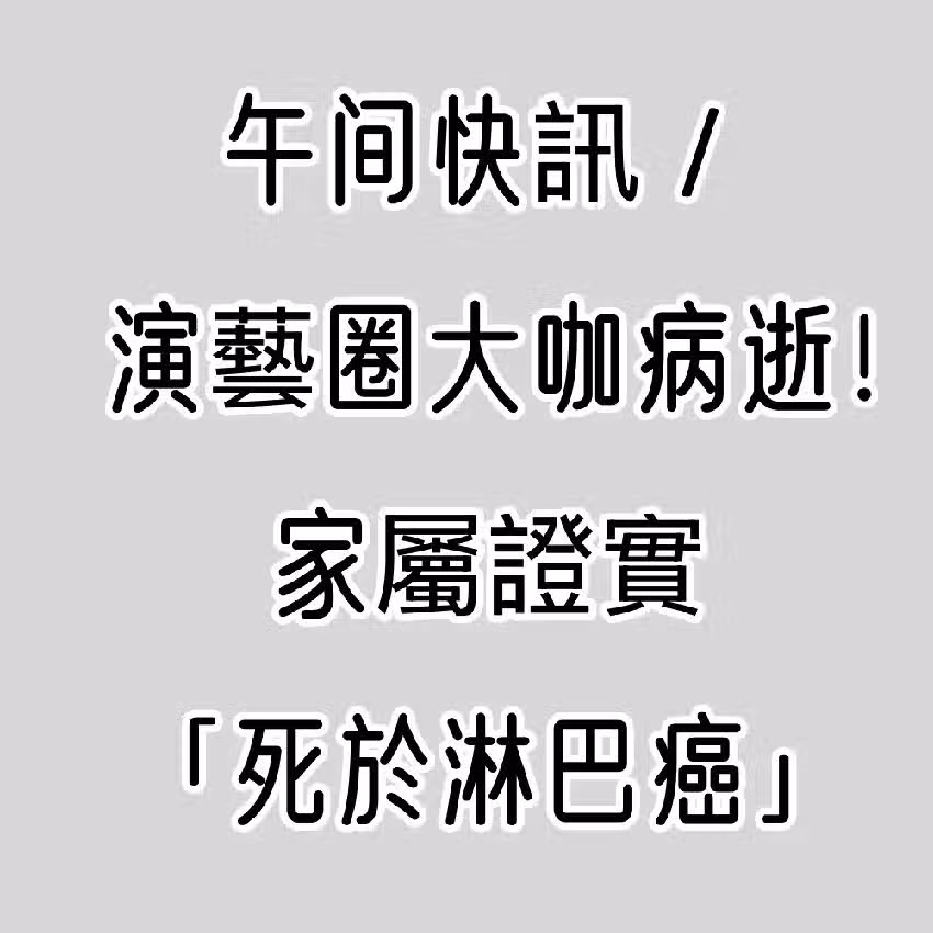 午間快訊/演藝圈大咖病逝!家屬證實「死於淋巴癌」生前作品無數...