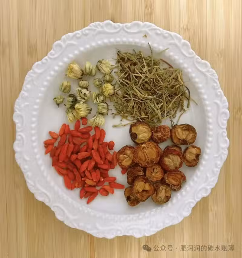 配方:金銀花6g + 山楂8g + 枸杞10g + 菊花5g