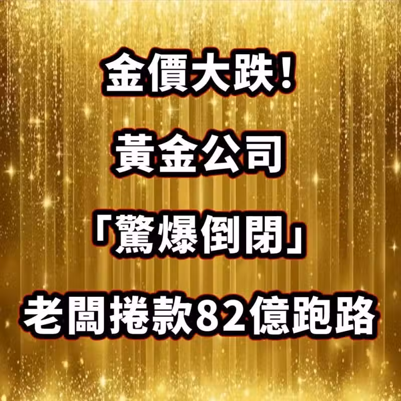 金價大跌!黃金公司「驚爆倒閉」老闆捲款82億跑路。