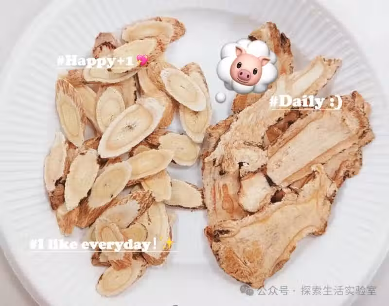 1️⃣當歸掰成小段,和黃芪一起泡10分鐘