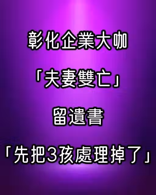 彰化企業大咖「夫妻雙亡」...留遺書「先把3孩處理掉了...」