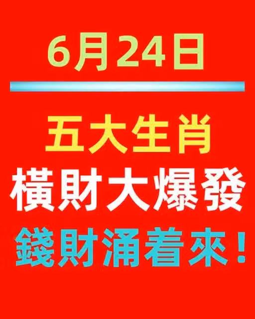 6月24日,五大生肖橫財大爆發,錢財涌著來!