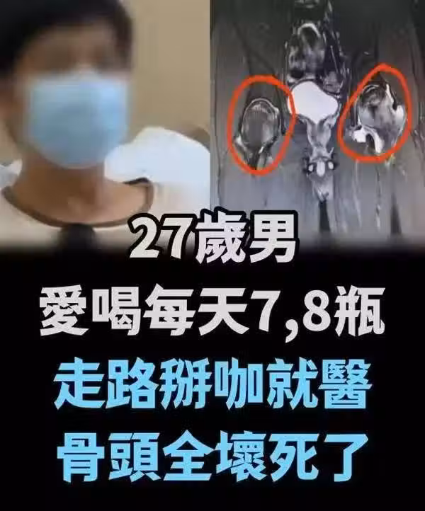 27歲男愛喝每天7、8瓶 走路掰咖就醫:骨頭全壞死了
