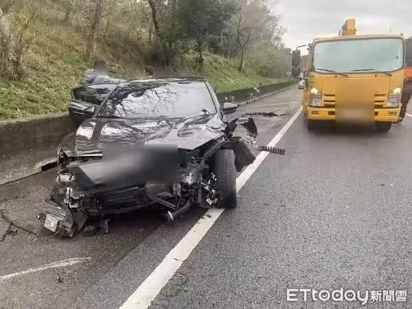初步了解,林姓男子(29歲)當時駕駛黑色小客車沿著國道向南行駛,行經事故路段時,疑似變換車道不當,擦撞廖男(40歲)駕駛的白色小客車,因此造成廖男座車翻覆。