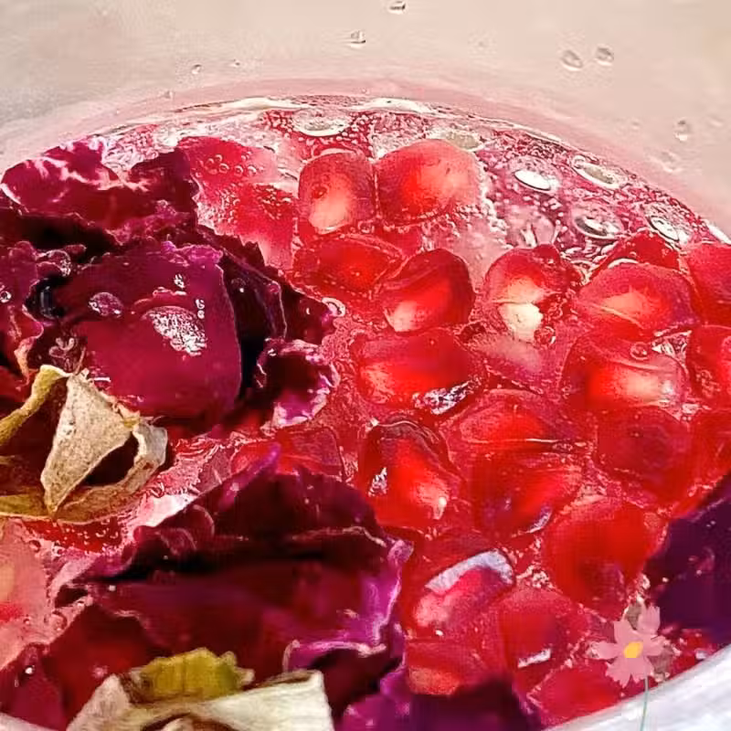 【食材】凍藍莓20顆、石榴半顆、玫瑰5朵、陳皮3g