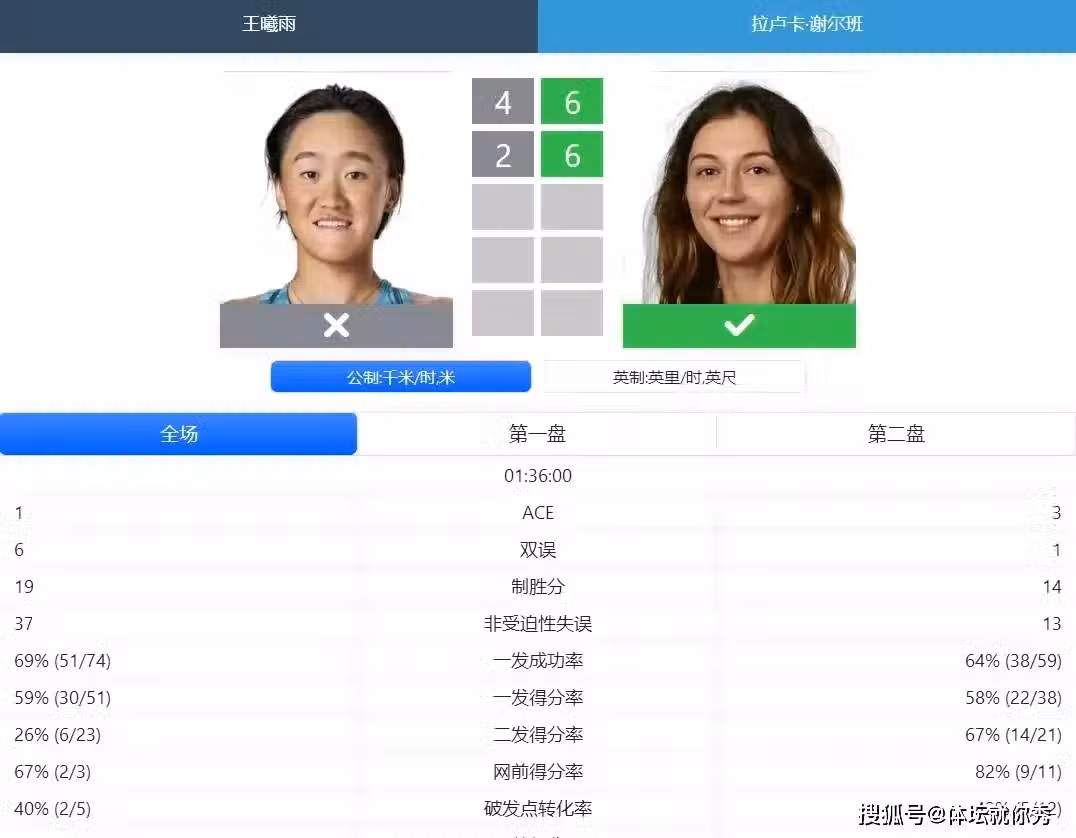 全場比賽,王曦雨發出了6次雙誤,儘管制勝分比對手多了5個,但在非受迫性失誤方面,王曦雨實在是有點看不懂啊,面對這樣的對手,竟然打出了37次非受迫性失誤。