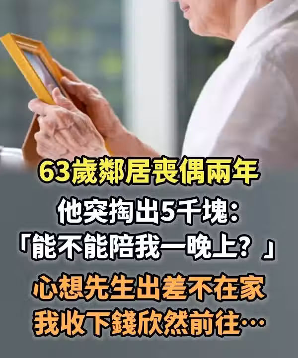 老年鄰居喪偶兩年,他突掏出5千塊:「能不能陪我一晚上?」心想先生出差不在家,我收下錢欣然前往…