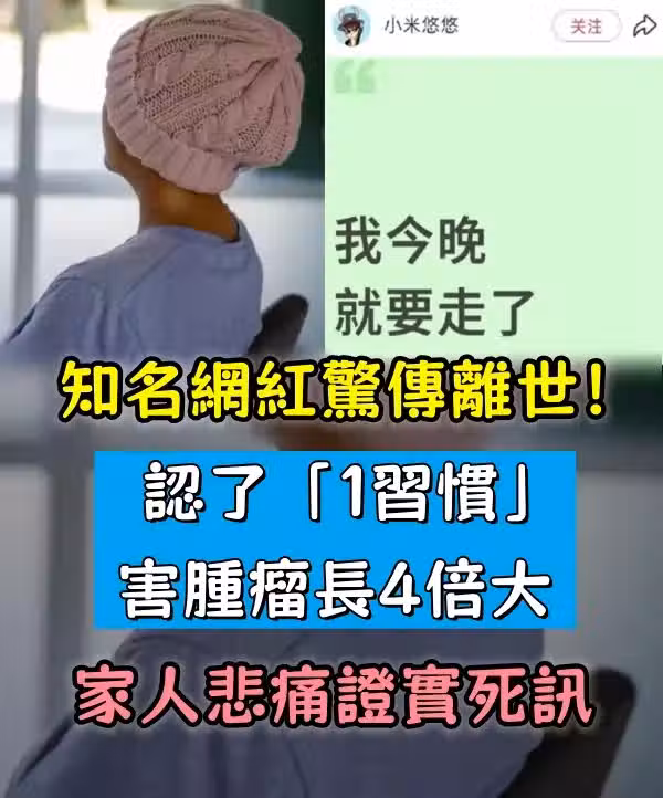 知名網紅驚傳離世!認了「1習慣」害腫瘤長4倍大 家人悲痛證實死訊