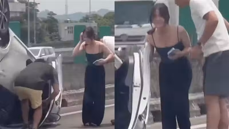 國道翻車180度!低胸妹「燦笑爬出」光腳路上跳 網封:樂天女孩