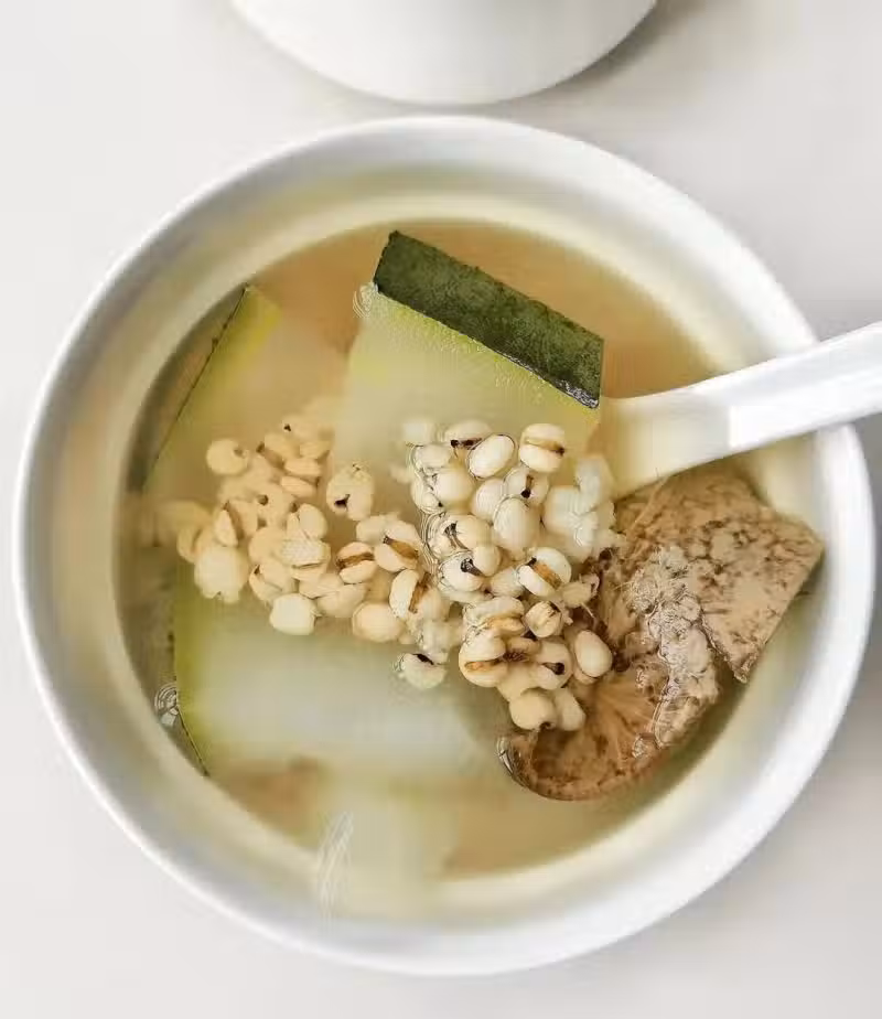夏天濕氣重,容易臉腫、眼皮腫,顯得沒精神。這碗水能幫助身體排出多餘水分,消除水腫,讓臉部輪廓更清晰、皮膚更緊緻。冬瓜清熱利水,薏仁健脾祛濕,陳皮理氣開胃。非常適合容易水腫、感覺身體沉重的夏天。