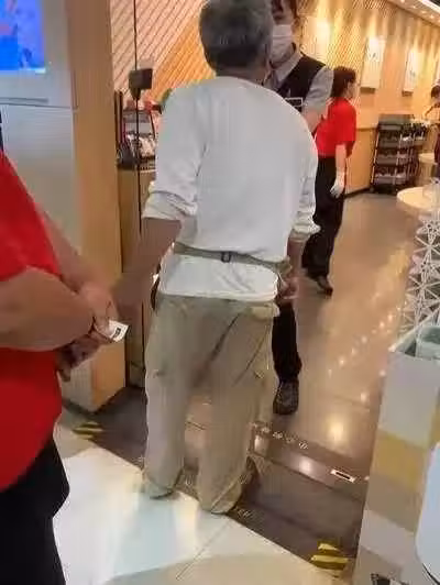 影片中平衡白髮老翁疑因排隊問題而對店員突然爆發,他聲稱自己已抽了號碼牌,不明白明明自己先到、店內有空位,為何還不能進店內用餐,