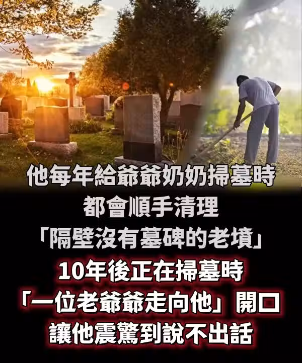 他每年給爺爺奶奶掃墓時,都會順手清理「隔壁沒有墓碑的老墳」10年後正在掃墓時「一位老爺爺走向他」開口讓他震驚到說不出話...