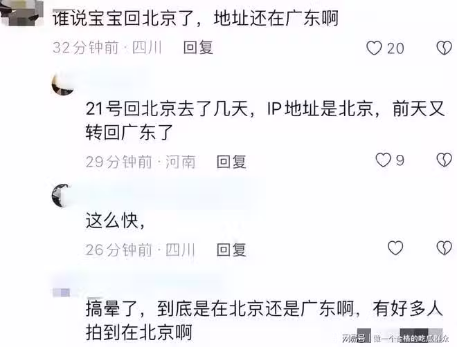雖說現在看她的IP又回到了廣東,可她社交平台上那張寫著「南鑼鼓巷」的冰淇淋照片,直接就把她的行蹤給「出賣」了。