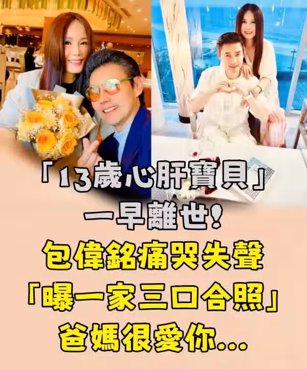 近日包偉銘卻在臉書宣布噩耗,悲痛又不舍地表示,13歲心肝寶貝在愛妻懷中離世,他落淚感嘆:「爸爸媽媽永遠愛你...」