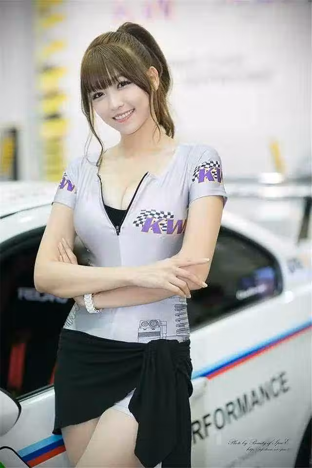 跑車在彎道加速奔馳轟隆隆的音浪,讓人聽了就血脈賁張,近距離看賽車超刺激,在比賽前高舉倒數牌的車模更吸引眾人目光,清涼穿著露出修長美腿,