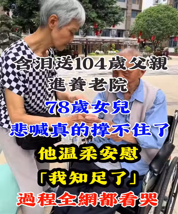 分別時,女兒淚流滿面,緊握父親的手哽咽道:「爸,我也不想送您來這啊!您跟我住了二十幾年,可我...我的身體真的撐不住了...」畫面令人動容:輪椅上的老父親,望著哭泣的女兒,自己眼中也噙滿淚水。