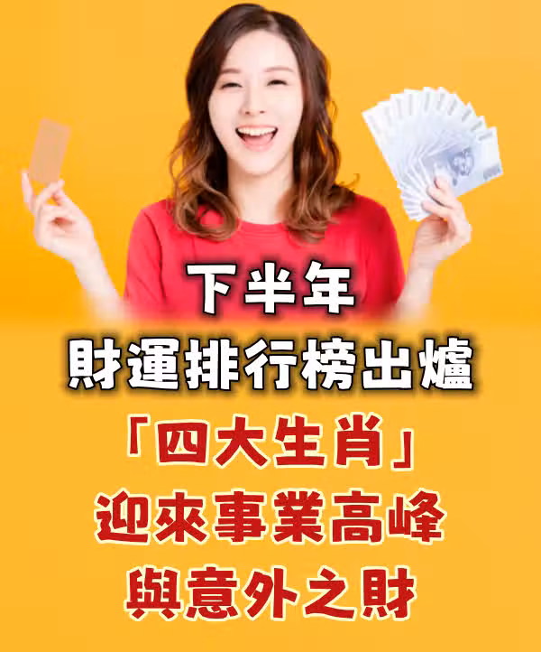 下半年財運排行榜出爐「四大生肖」迎來事業高峰與意外之財