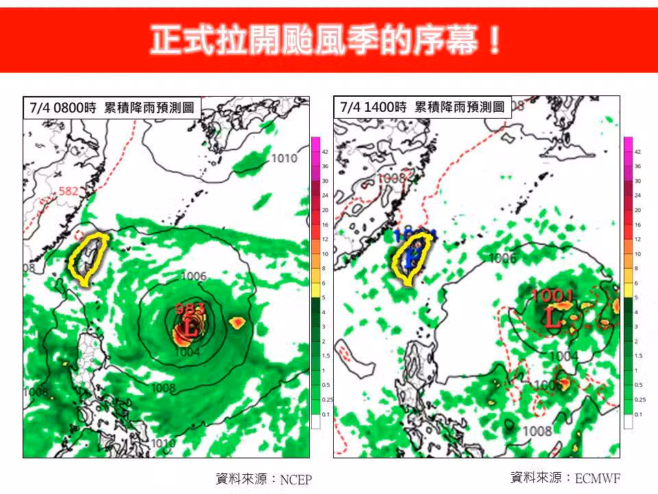 林得恩續指,今晨美國NCEP模式及歐洲ECMWF模式均模擬出,在本周四(3日)前後,開始有熱帶擾動生成的訊號,擾動強度並有繼續發展、增強為颱風的趨勢。至於,隨後移動的方向,林得恩表示端視駛流場的導引,也就是太平洋高壓西伸或東退的程度,不確定性非常大,通常至少要等到擾動形成為熱帶性低氣壓時,形勢才會比較明朗。