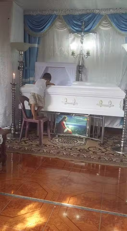 小男孩不知道媽媽已經去世,還趴在棺木上痴痴望著她,當阿姨聽到他問出「這一個問題」心臟都裂開了…