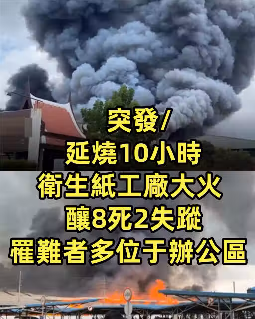 突發/延燒10小時 衛生紙工廠大火釀8死2失蹤 罹難者多位於辦公區