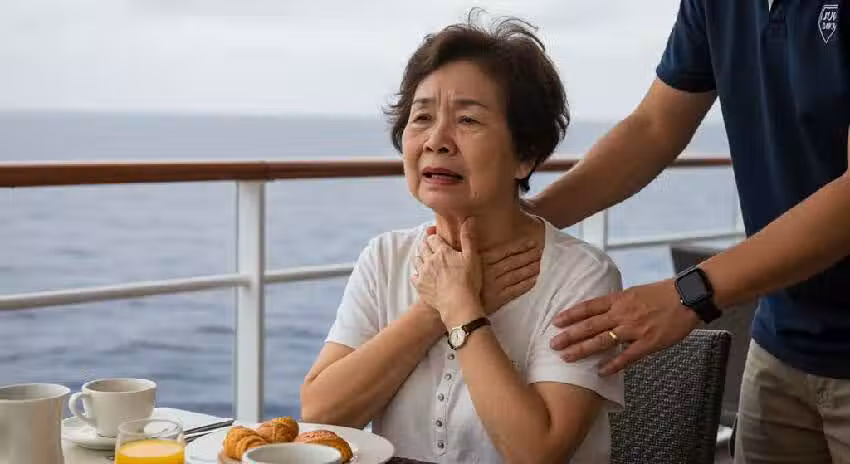 事發於當地時間6月27日上午9點多,這位台灣阿嬤正在遊輪上享用早餐。