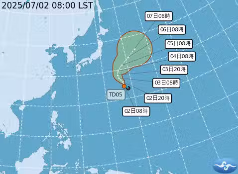 氣象專家林得恩在臉書粉專「林老師氣象站」分析颱風動態,表示目前西北太平洋上有2個熱帶系統正在發展,其中熱帶性低氣壓TD05在未來24小時內有發展為輕度颱風的趨勢,路線朝日本東南方外海前進,但由於距離甚遠,對台灣並無影響。